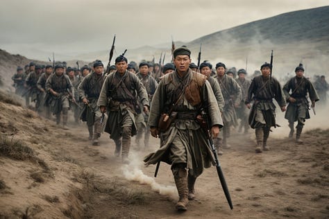 In the crisp morning air, Darje led his eclectic army – his eight Indian brothers-in-arms, a cadre of forty-five battle-hardened monks, and a contingent of eighty-nine civilian volunteers. Among them, a handful wielded rifles, weapons that represented the merging of old traditions and new necessities. They traversed treacherous mountain passes, a caravan of grim resolve, following the trail of the enemy.
