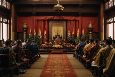 "Sumosakya, as the heart of our alliance and our strongest fortress, will be our final stand and our rallying point," Darje declared, his voice resonating with the power of his newfound leadership. "I hereby summon all able monks from across Bod to gather here, prepared for war." At his command, a flurry of messages were dispatched, carried swiftly by servant boys into the night.